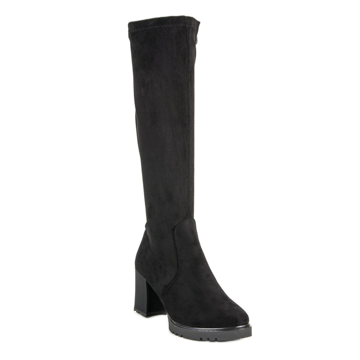 A fekete velúr csizma tökéletes választás azoknak a nőknek, akik az eleganciát a kényelemmel szeretnék ötvözni. Ökológiai velúrból készültek, rendkívül stílusosan néznek ki, és megfelelnek a legújabb divatirányzatoknak. Ez a klasszikus térdig érő csizma tökéletesen kiemeli a női alakot, a magas, 8,5 cm magas sarok pedig karcsúbbá és kecsesebbé varázsolja a lábakat.