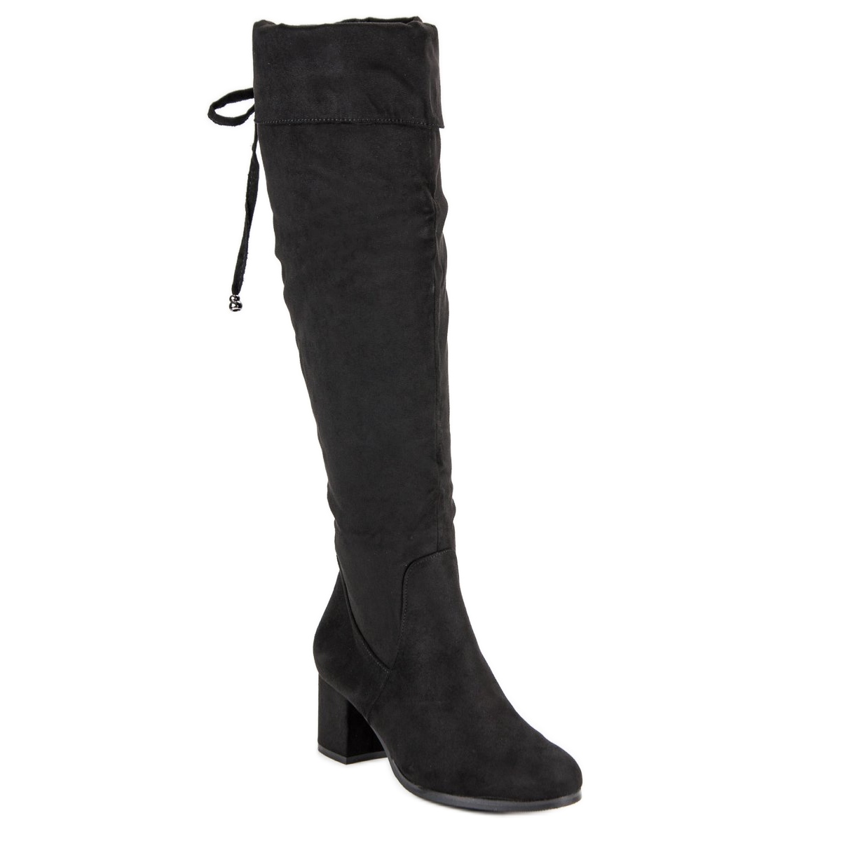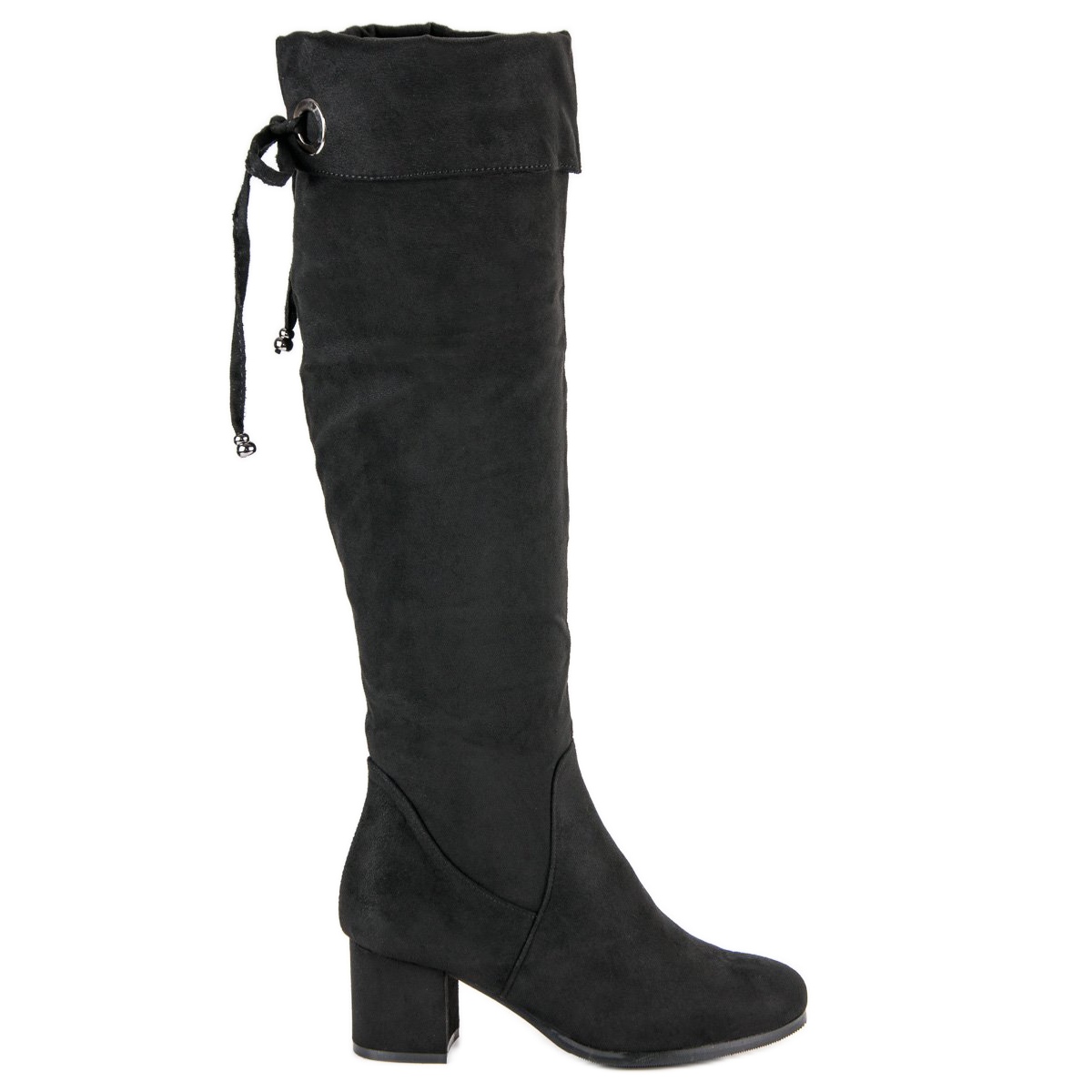A fekete velúr csizma időtlen ruhadarab, amely minden ruhát eleganciát kölcsönöz. Kiváló minőségű ökológiai velúrból készült cipők klasszikus formájukkal és a részletekre való odafigyeléssel vonzzák a figyelmet. A felső térd feletti magasságnak és a 6 cm magas tömbsaroknak köszönhetően a csizma tökéletesen kiemeli a női lábakat, miközben biztosítja a stabilitást és a viselési kényelmet.