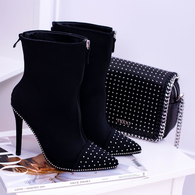 Bemutatjuk a divatos fekete BUGO bokacsizmákat, amelyek minden bizonnyal minden stílus kulcsfontosságú elemei lesznek. Kiváló minőségű, puha velúrból készültek, nem csak elegáns megjelenést, de viselési kényelmet is biztosítanak. A finom bélés és a stabil, 11 cm magas sarok minden lépést kényelmessé tesz, magabiztosan és stílusosan fogod érezni magad.
