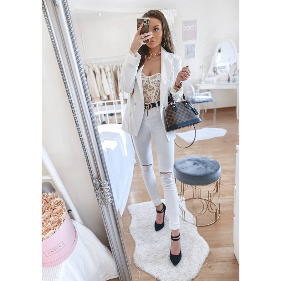 A 11 cm-es sarokmagasságnak köszönhetően az alak karcsúbb, a lábak pedig hosszabbnak tűnnek. Ezenkívül a csatba varrt rugalmas szalagok tökéletes illeszkedést biztosítanak, és egész napos viseletet biztosítanak.
