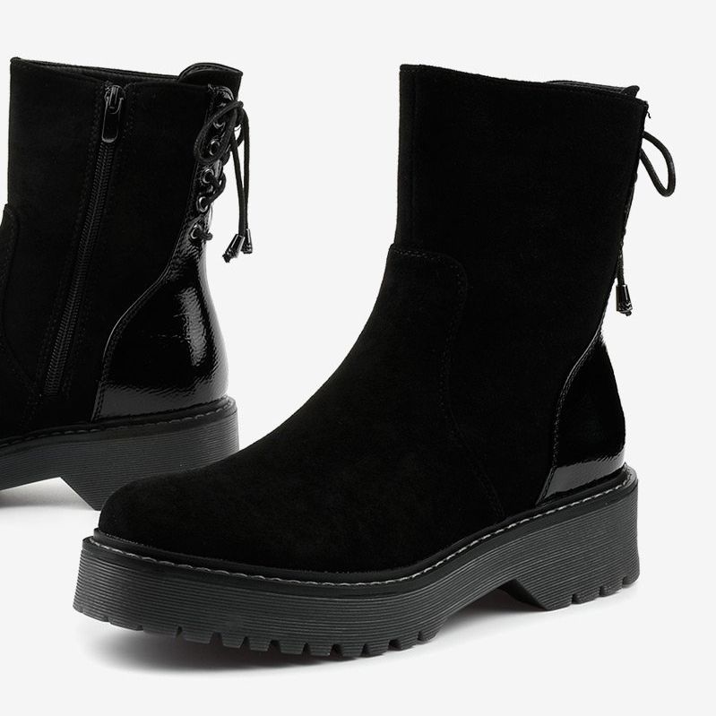 Elegáns, időtlen Keensallow női csizma ökológiai bőrből, velúr textúrával. A boka modell ötvözi a kényelmet és a divatos, városi jellegét: A szigetelés egy anyag betéttel teszi a cipőket tökéletesen a hűvösebb napokon, és a platform 4,5 cm -es hozzáadása néhány centiméter hozzáadása nélkül a stabilitás elvesztése nélkül. A csúszka rögzítése megkönnyíti a gyors elhelyezést, míg a dekoratív kötés és a lakkozott betét hátul hangsúlyozza az elegáns formát.