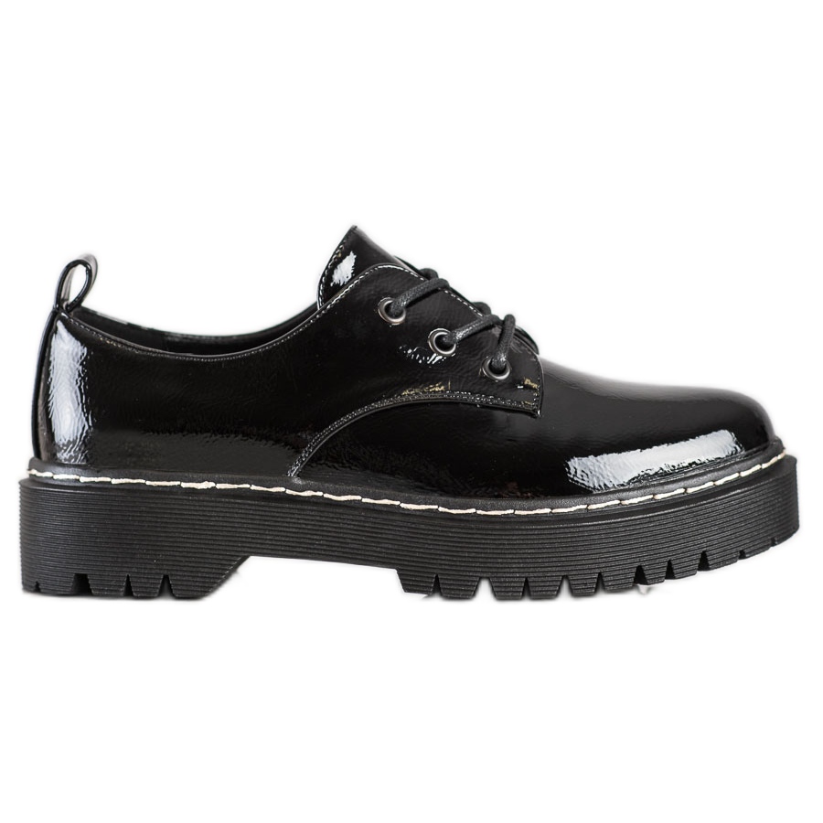 A VINCEZA cipő beépített, puha sarokkal rendelkezik, amely egész napos viselési kényelmet garantál. A kerek orr bájt kölcsönöz nekik, a lakkozott felület pedig kivételesen elegáns megjelenést kölcsönöz nekik. Futófelülettel ellátott műanyag talpuk optimális tapadást biztosít, ami fontos előny a mindennapi használat során.