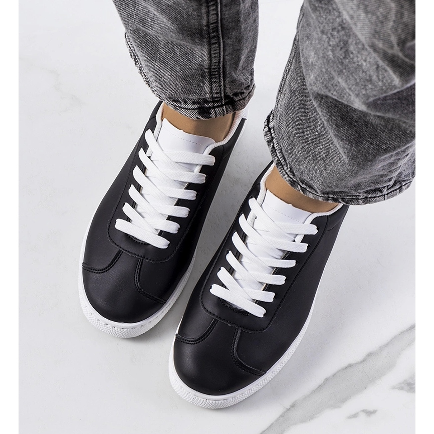 Klasszikus, alacsony, fekete cipők, fehér részletekkel, amelyek tökéletesen kiegészítik a tavaszi és a nyári stilizációkat. Egy egyszerű, időtlen vágás kerek orrral és egy fehér gumi talppal olyan univerzális modellt hoz létre, amely megfelel mind a farmer, mind a nyári ruháknak.