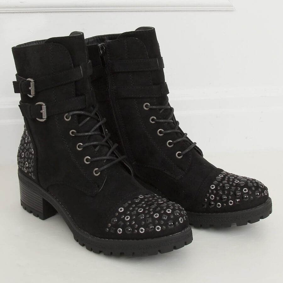 Bemutatjuk a 88063 fekete fekete munkáscsizmát - tökéletes választás azoknak a nőknek, akik a klasszikus stílust egy kis rockőrülettel szeretnék kombinálni. Ezt a talppal és protektorral ellátott fűzős bokacsizmát szemet gyönyörködtető díszítés jellemzi. A fényes kövek és strasszok egyedi karaktert adnak nekik, így minden tulajdonos igazi sztárnak érzi magát.