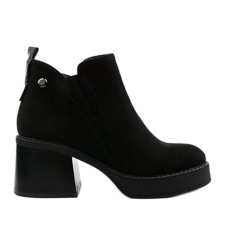 Ezek a csizmák a bokáig érnek, így tökéletes a hidegebb napokra. A vastag, szintetikus talp és a 7,5 cm-es tömb alakú sarok garantálja a lábak talajtól való jó szigetelését és stabilitását járás közben. A kerek orr finomságot ad, az oldalsó cipzár pedig megkönnyíti a fel- és levételüket.
