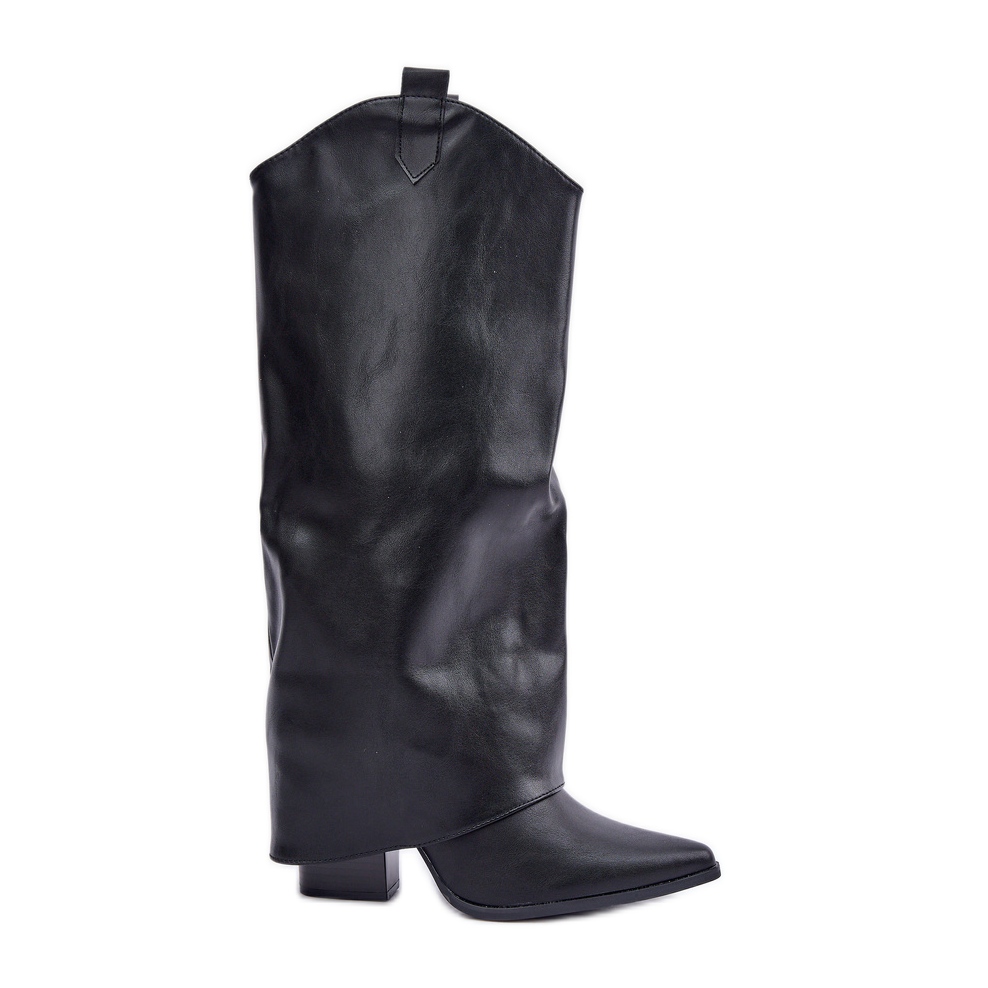 Inna marka Felbújós csizma sarokban felhajtott felsővel, fekete
