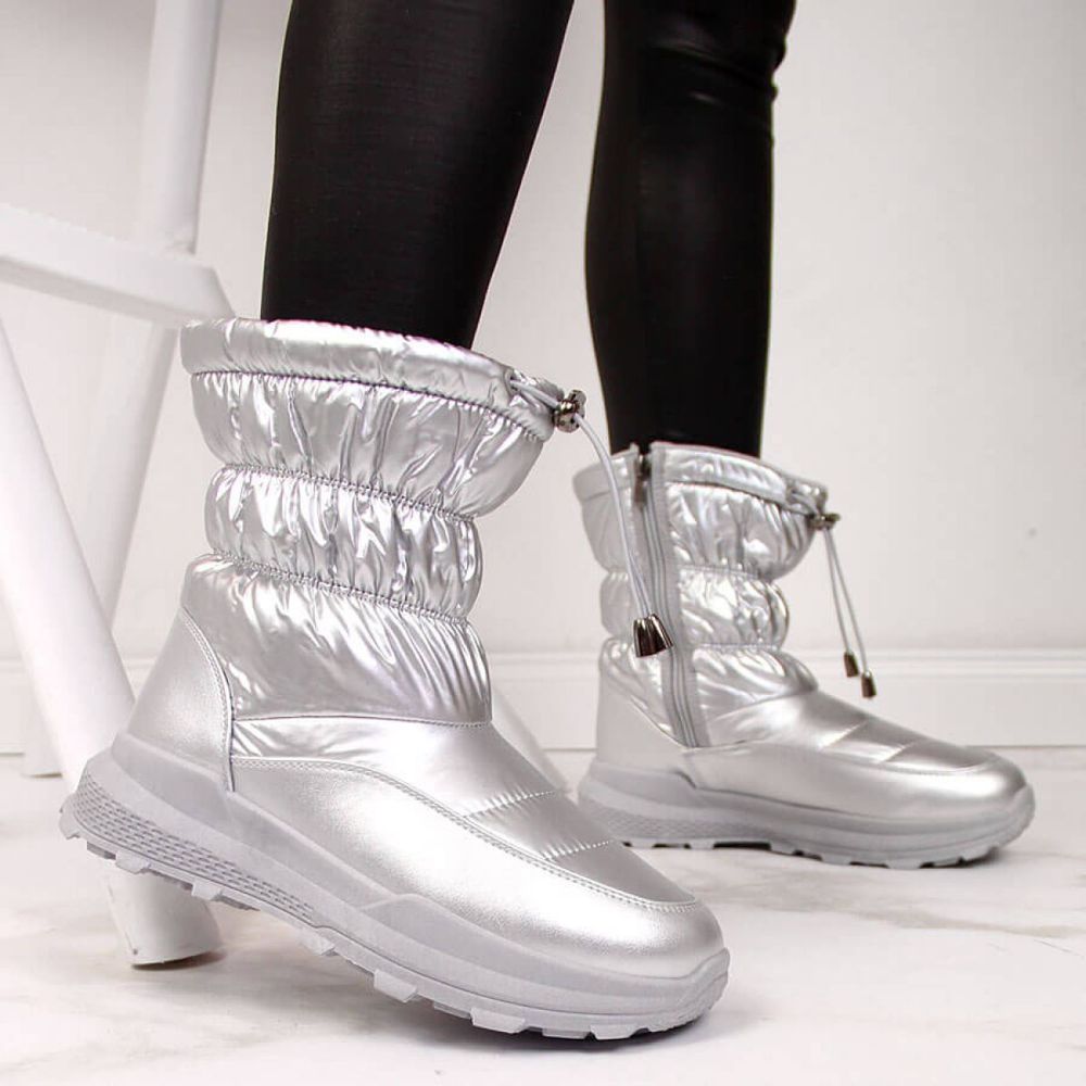 HÍREK A W EVE310C ezüstszínű metál hócsizma tökéletes választás minden nő számára, aki a divatos stílust a kényelemmel szeretné kombinálni a hideg napokon. Kiváló minőségű szintetikus anyagokból készült, magas felsőrészük tartósságot és időjárásállóságot biztosít, tökéletes őszre és télre.