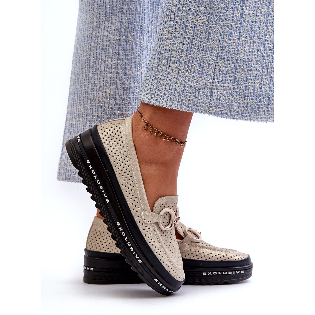 S.Barski Fényes bőr női mokaszinok az emelvényen díszítéssel S.Barski LR750 Gold aranysárga