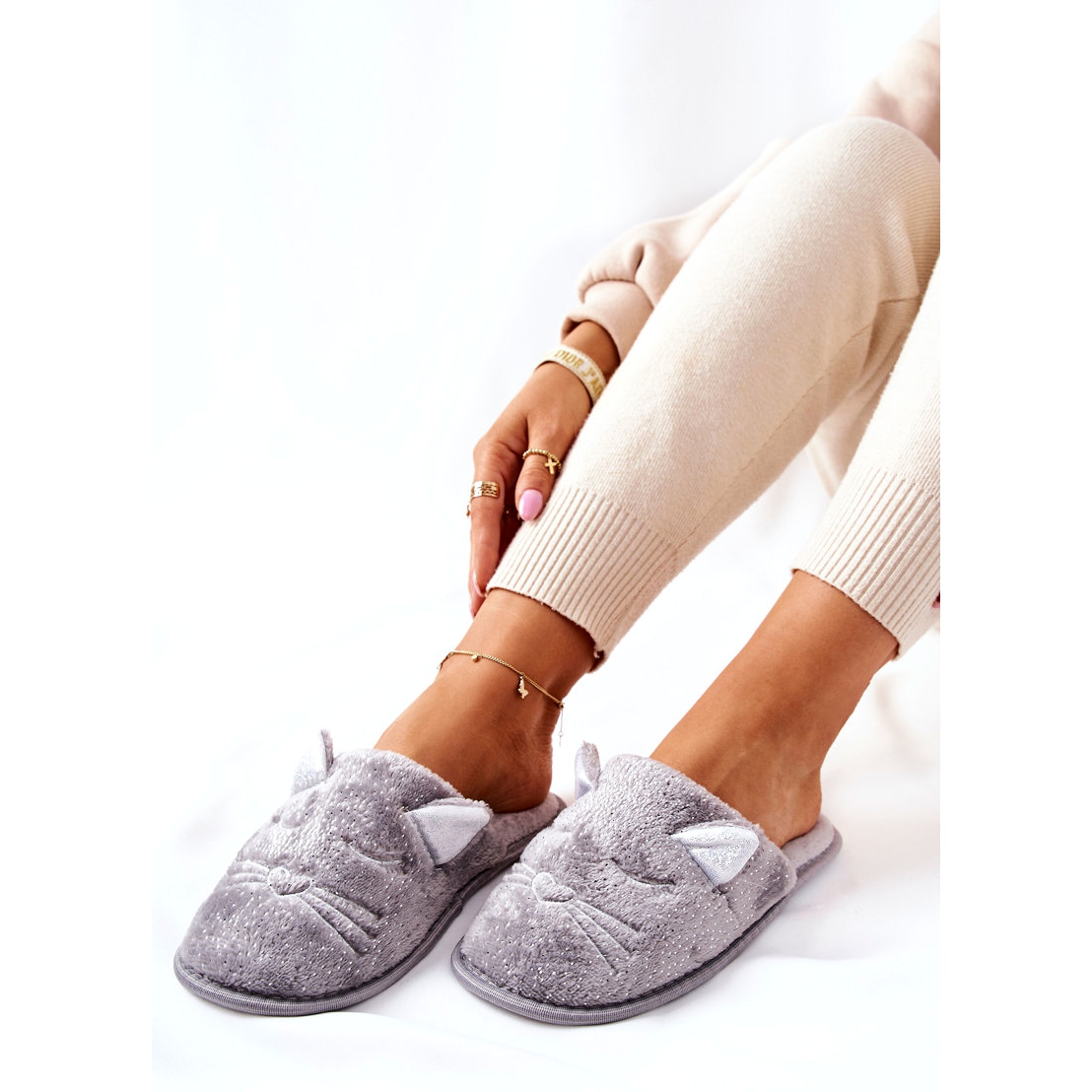 Részletek: PE1 Fényes cicapapucs szürke Kaisy fülekkel