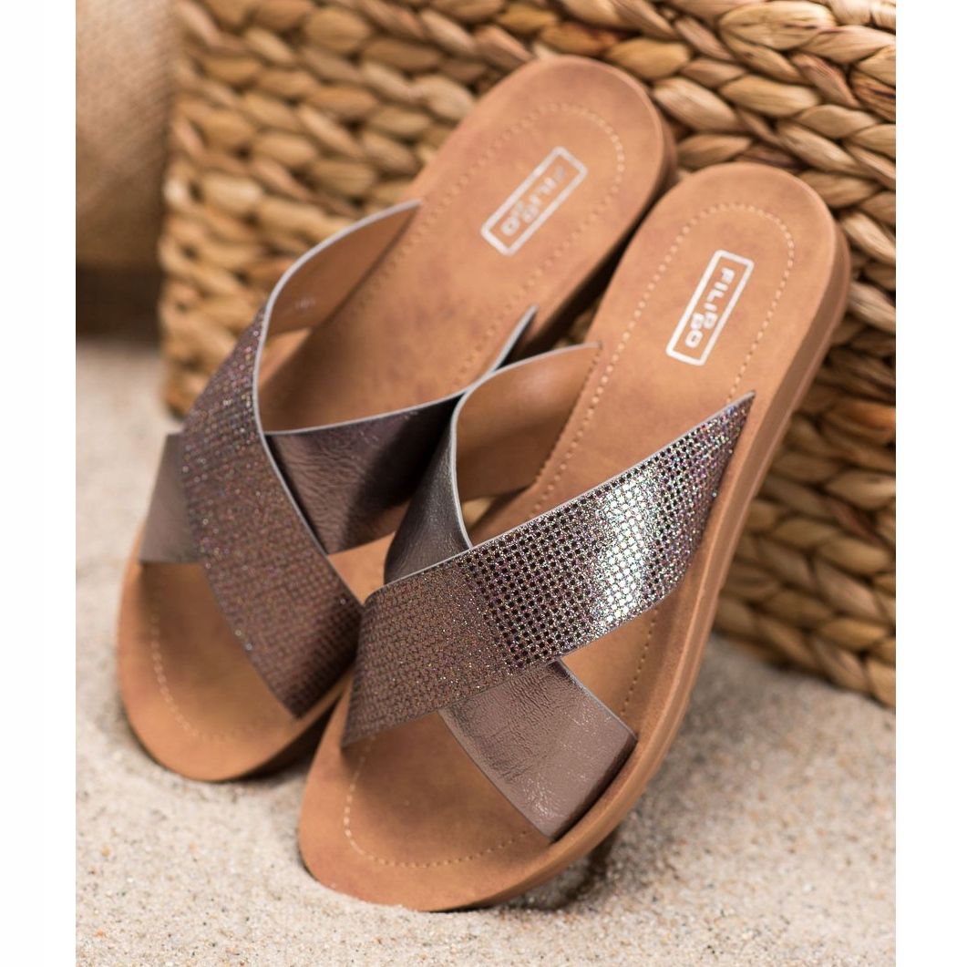 Filippo Filippo Fényes Eco bőr papucs szürke