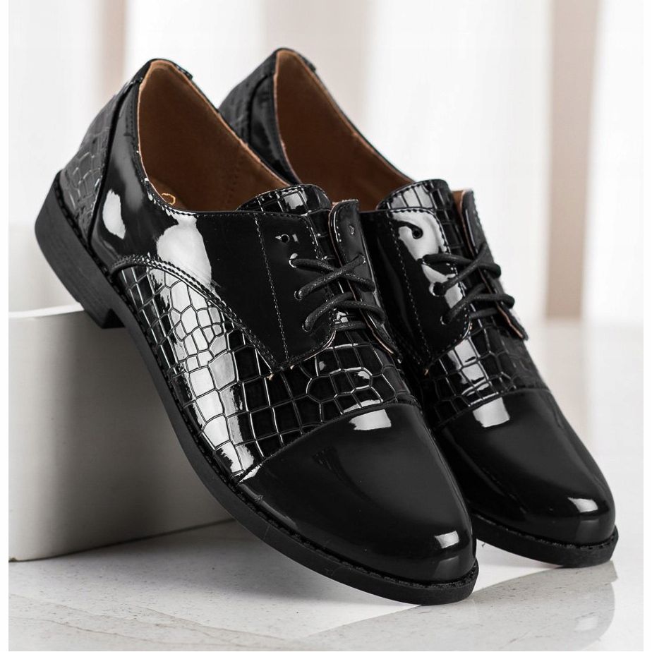 SHELOVET SHELOVET Fényes kígyómintás cipő fekete