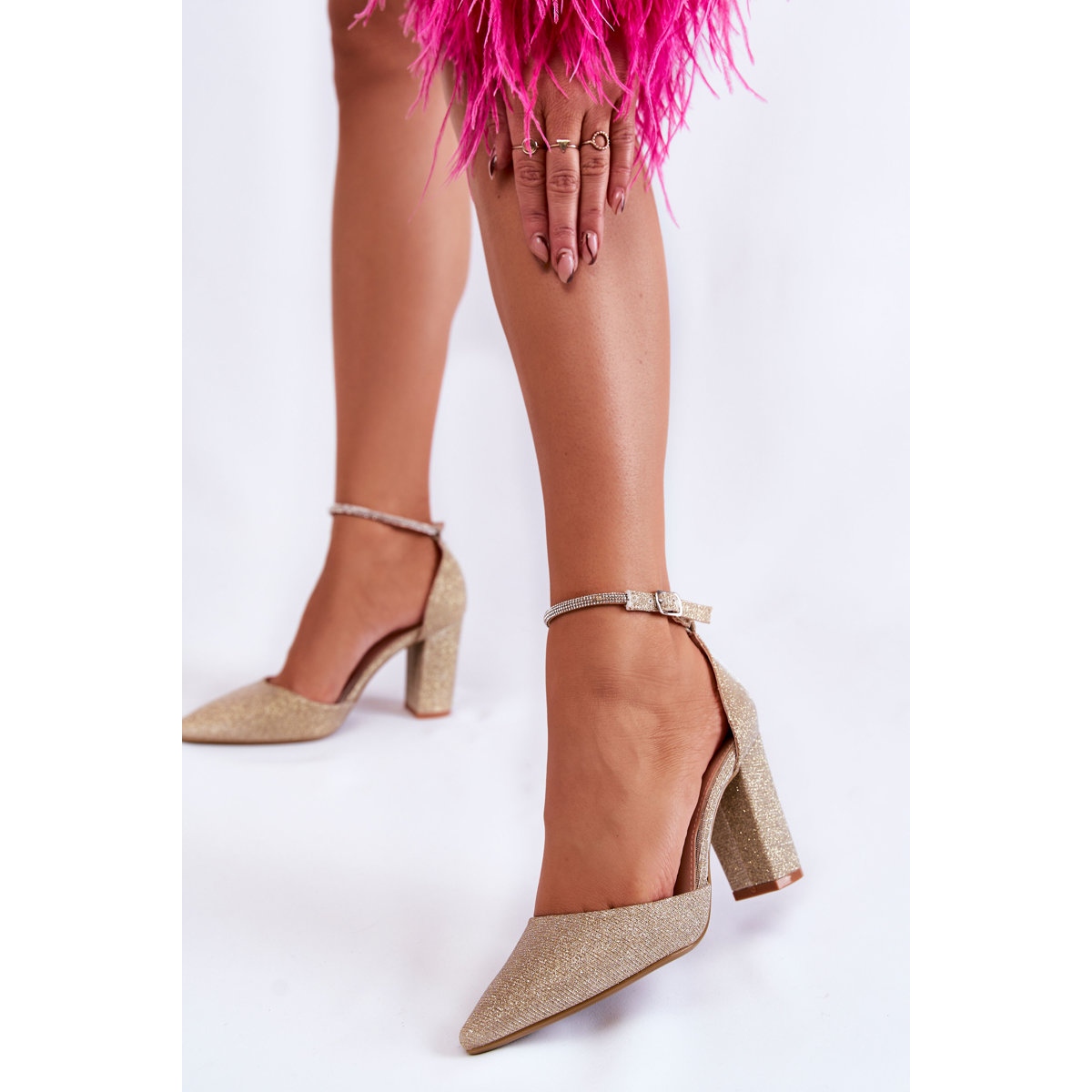 Fedezze fel az eleganciát és a stílust a káprázatos arany színű PS1 pumpákkal! Ezek a divatos, stabil tömbsarkú cipők tökéletesen illeszkednek az aktuális trendekhez, ugyanakkor kényelmet és magabiztosságot biztosítanak lépéseiben. A strasszokkal díszített, állítható pánttal a boka köré rögzítve ezek a hegyes orrú pumpák tökéletesek egy esti kiránduláshoz, egy romantikus vacsorához vagy egy elegáns bulihoz.