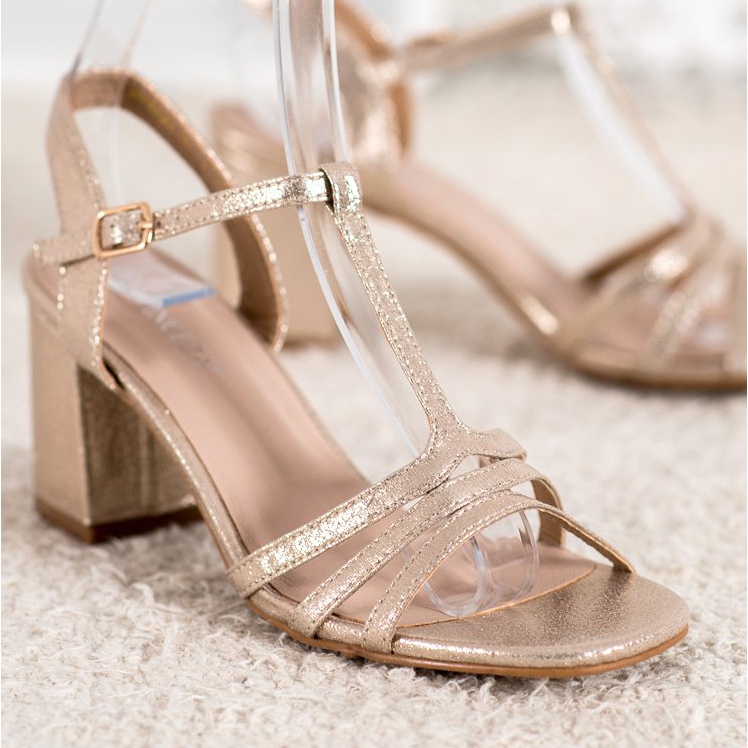 Készüljön fel a nyári kalandok szezonjára a Vinceza elegáns, fényes magassarkú szandáljával! Ezeket az egyedi cipőket nemcsak gyönyörű arany színük, hanem gondosan megtervezett szabása is megkülönbözteti, amely minden helyzetben kényelmet és stílust biztosít.