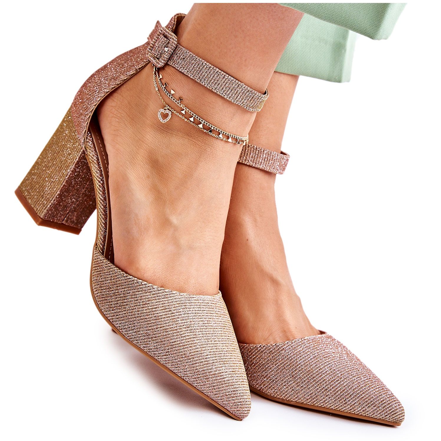 A pumpák állítható csattal ellátott pánttal vannak rögzítve, amely garantálja a megfelelő illeszkedést a lábhoz. A hegyes orrnak és a stílusos, stabil tömbsaroknak köszönhetően ezek a cipők minden alakot kiemelnek, miközben kényelmes viseletet biztosítanak. A kiváló minőségű anyagból és ökológiai bőr talpbetéttel ellátott Amira pumpák tökéletes ajánlatot jelentenek azoknak a nőknek, akik értékelik a divatos dizájnt.