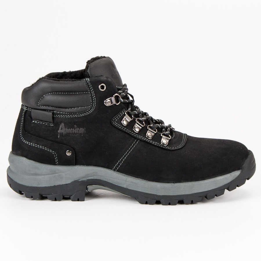 A klasszikus, strapabíró American Club csizmák olyan férfiak számára készültek, akik értékelik a sportos stílust és a szilárd kidolgozást. Természetes bőrből készült, szigetelt báránybőr talpbetéttel és masszív talppal, futófelülettel, kényelmet és stabilitást biztosítanak az őszi és téli szezonban. A merevített sarokpult és az átgondolt fűzés garantálja a biztos lábtartást, az elegáns, egyszerű fekete szín pedig a lezser, hétköznapi stílusokhoz illik.