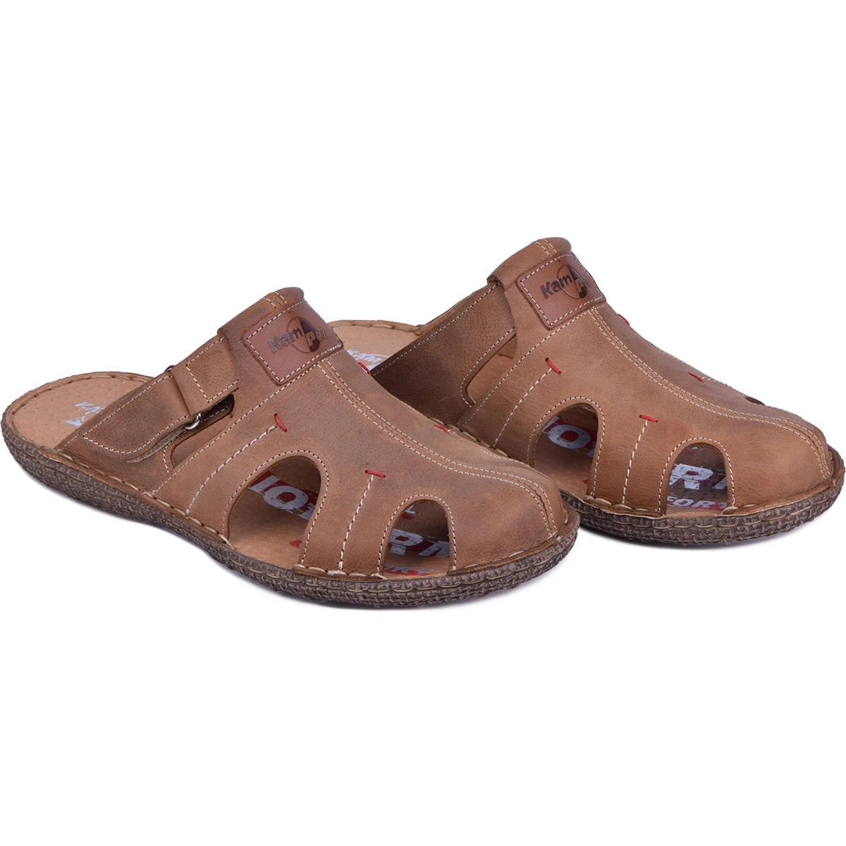 A Kampol 217/22KAM a klasszikusok, a kényelem és a tartósság kombinációja - gyakorlati választás azoknak a férfiaknak, akik a nyárra univerzális, bőr papucsot keresnek.