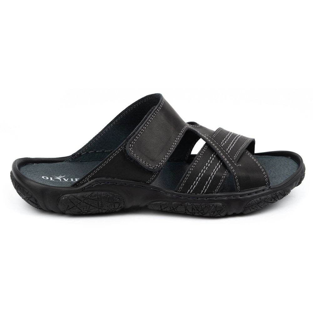 Olivier Olivier Férfi bőr papucs 680 mA fekete