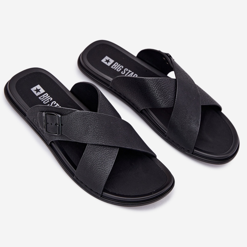 Big Star Big Star Férfi bőr papucs nagy csillaggal RR174076 fekete csat