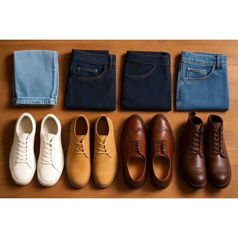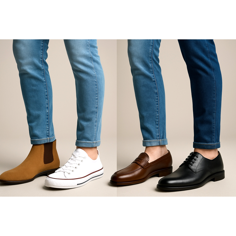 Teljes útmutató a férfi cipők kiválasztásához a különböző stílusú farmerekhez. Tanuld meg a formázás szabályait a vékony szabástól a táskásig, és fedezd fel a tökéletes kombinációkat.