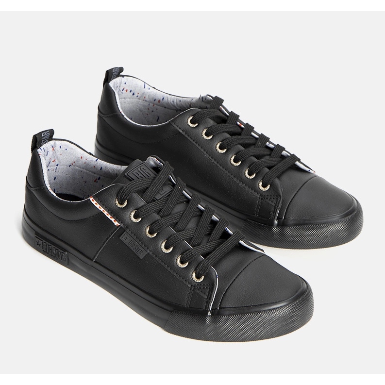 Fekete Big Star KK174004 cipők - Klasszikus, kényelmes és univerzális. Az alacsony profilú vágás a mindennapi stílusban fog működni: farmer, chinos vagy rövid nadrág esetén. Az ökológiai bőr külső része elegáns megjelenést kölcsönöz, és a textil talpbetét egész nap biztosítja a kényelmet.