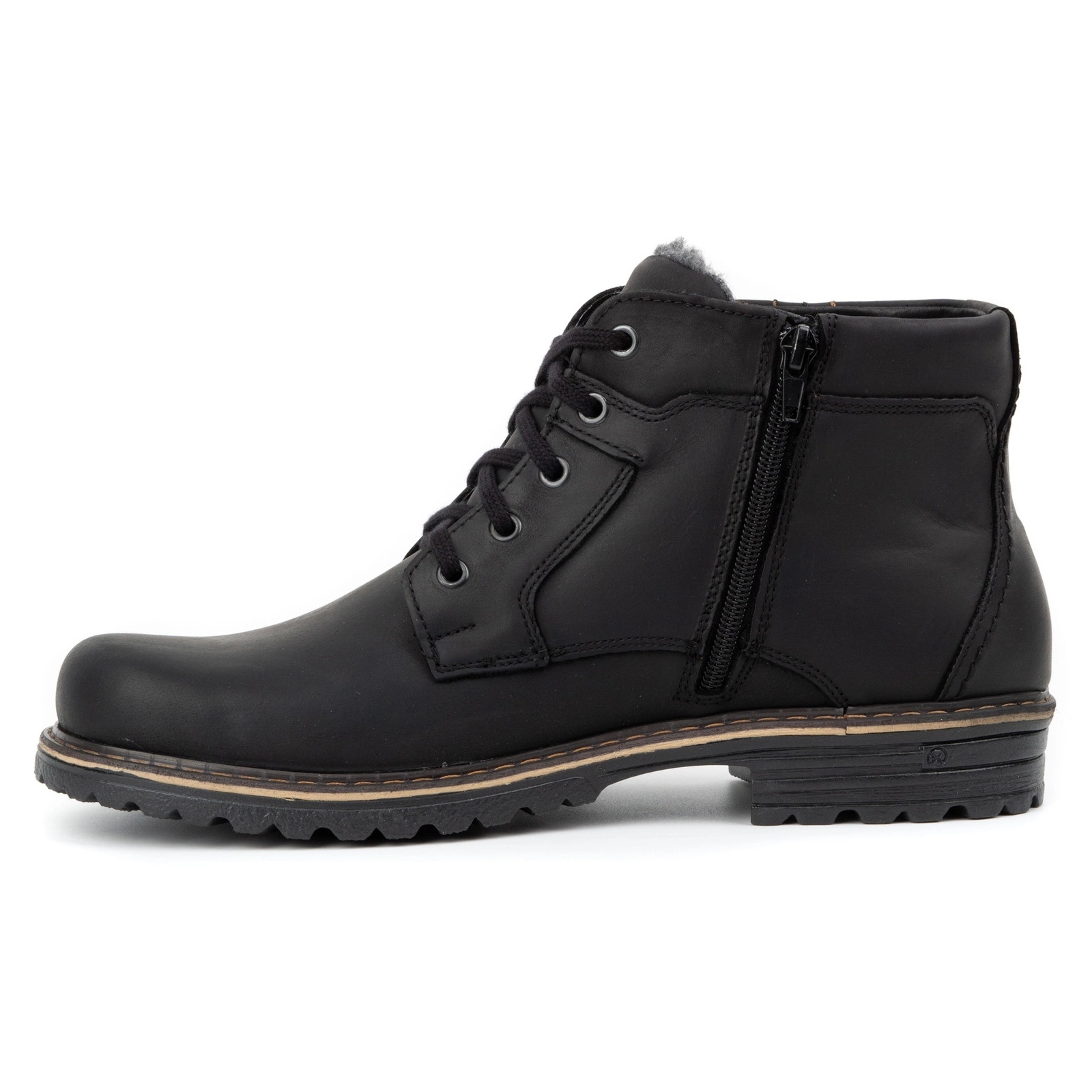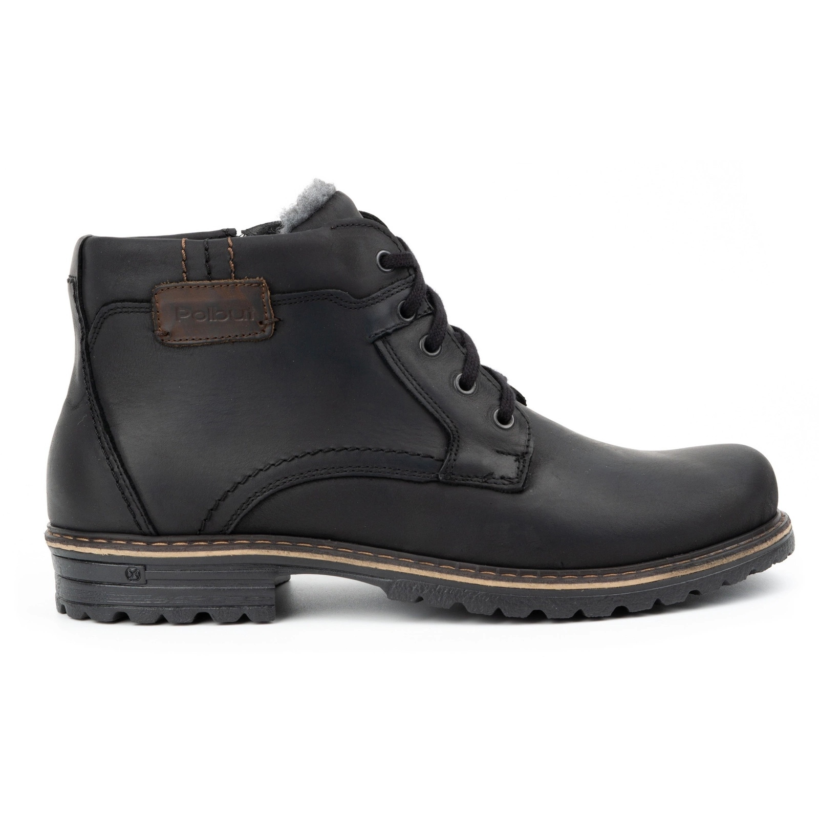 A Polbut J35 szilárd, elegáns hócsizma olyan férfiak számára, akik a téli lábbeli stílusának, tartósságának és funkcionalitásának kombinációját várják el. Természetes bőrből készült, klasszikus, univerzális fekete színű, mind a napi városi stilizációkhoz, mind a hideg napokon hosszabb sétákhoz fognak működni.