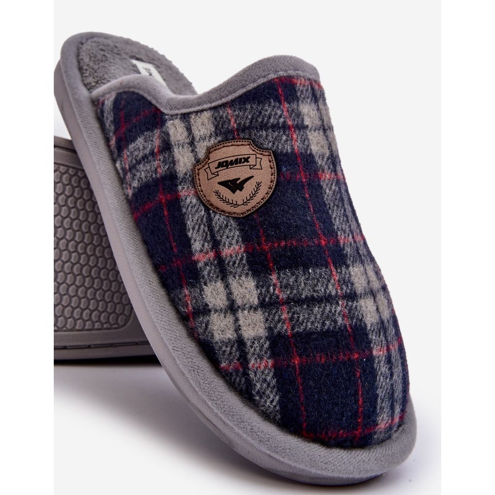 Azok számára, akik nagy jelentőséget tulajdonítanak a részleteknek - a papucsok 2 cm vastag talpa kiváló minőségű gumiból készült, amely nemcsak kényelemről, hanem biztonságról is gondoskodik a ház körüli séták során. Ügyeljen a domináns mintára - a kockás mintára - és a visszafogott színpalettára, ahol a szürke fő árnyalata a kék finom árnyalataival kombinálódik.