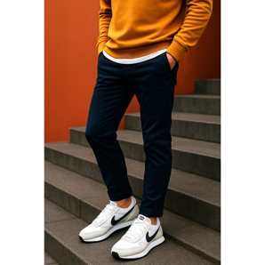 Intelligens alkalmi - chino + minimalista sportcipő (Stan Smith, fehér AF1, Ultraboost visszafogott színekben) elegánsan és kényelmesen néz ki.