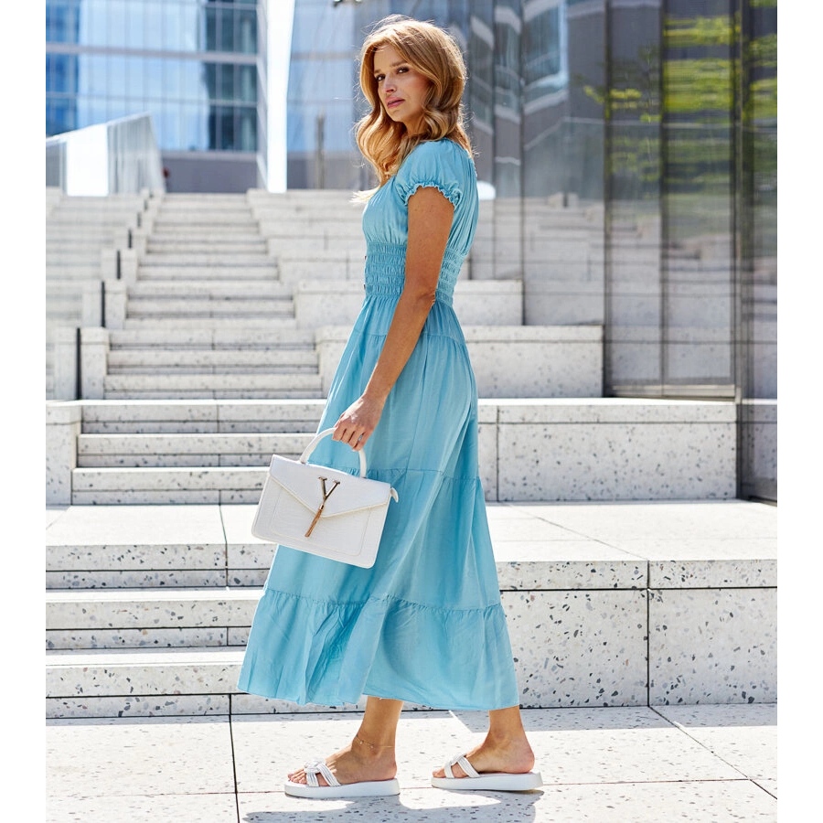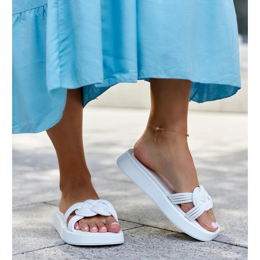 A CM-49 modellt egy csúszókapocs különbözteti meg, ami megkönnyíti a felhelyezést. A 3 cm -es magas platform biztosítja az egész nap viselkedésének kényelmét, és a talp fehér színe tökéletesen illeszkedik a legújabb divat trendekhez. A Ferrei flip flopok a nyári kollekció részét képezik, és minden nő szekrényének kedvenc elemévé válik.