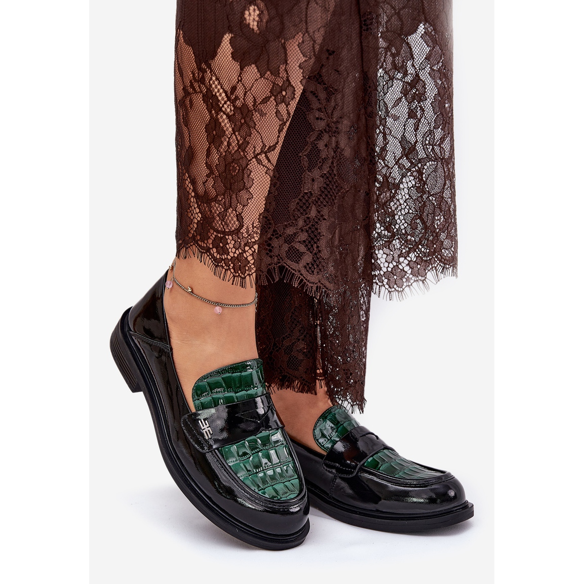 Fedezze fel az eleganciát és a kényelmet a lakkozott bőr női mokaszinokkal, a Vinceeza 91125 zöld és fekete színben. Ezek a stílusos cipők a legmagasabb minőséget kombinálják a divatos formatervezéssel. A természetes lakkozott bőrből készült, nemcsak esztétikai megjelenést, hanem tartósságot és kényelmet is biztosítanak.