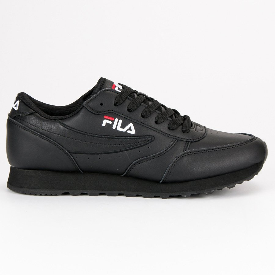 Fila Orbit Jogger Low - fekete férfi sportcipő, amely ötvözi a kényelmet és a klasszikus, univerzális dizájnt. Fekete ökológiai bőrből készült, textil talpbetéttel és stabil, beépített sarokkal, tökéletesek a mindennapi használatra és az aktív életmódhoz. Az alacsony, enyhén taposott műanyag talp húzó- és kopásállóságot biztosít, a fűzős rögzítés pedig a pontos illeszkedést.
