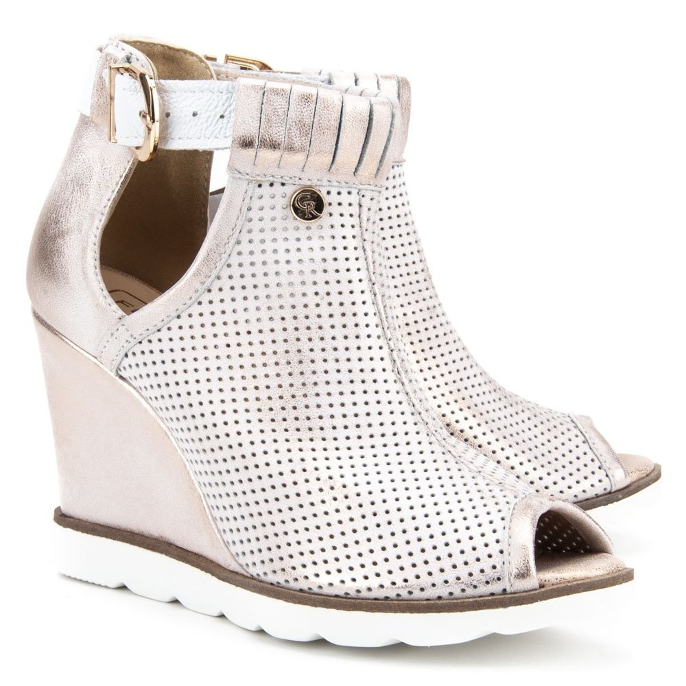 A 307 Pink modellt a könnyedséget kölcsönző áttört kialakítás és a mandula alakú orr jellemzi. A bokacsizma a boka fölé ér, ami tökéletessé teszi számos hétköznapi stílushoz, az alkalmitól az elegánsig. Felső magassága 9 cm, talpa 1,5 cm, ami a 9,5 cm-es ékkel együtt stabilitást és kényelmet biztosít egész nap.