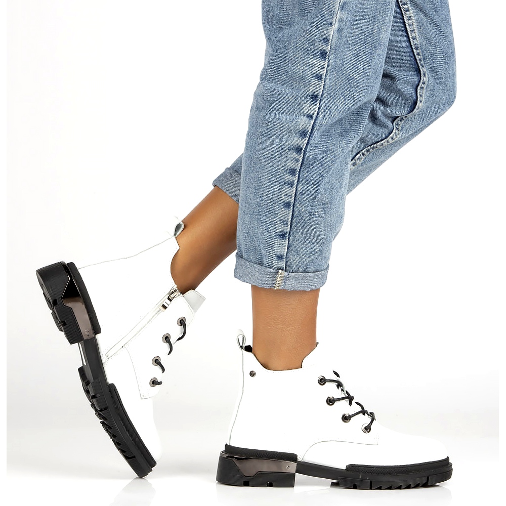 Stílusos, lakkozott Filippo DBT4173 csizma klasszikus fehér színű, elegáns megjelenést és gondos felületet kombinál. Természetes, lakkozott bőrből készült, kellemes, rövid szőrme, hűvösebb napokban hőt és kényelmet nyújtanak. A sík sarok, 3,5 cm magasságú és lekerekített orr garantálja az egész nap viselésének stabilitását és kényelmét. A cipzár és a kötő rögzítőeleme megkönnyíti a felső illeszkedést, és az oldalsó finom logó hozzáadja a stílust.