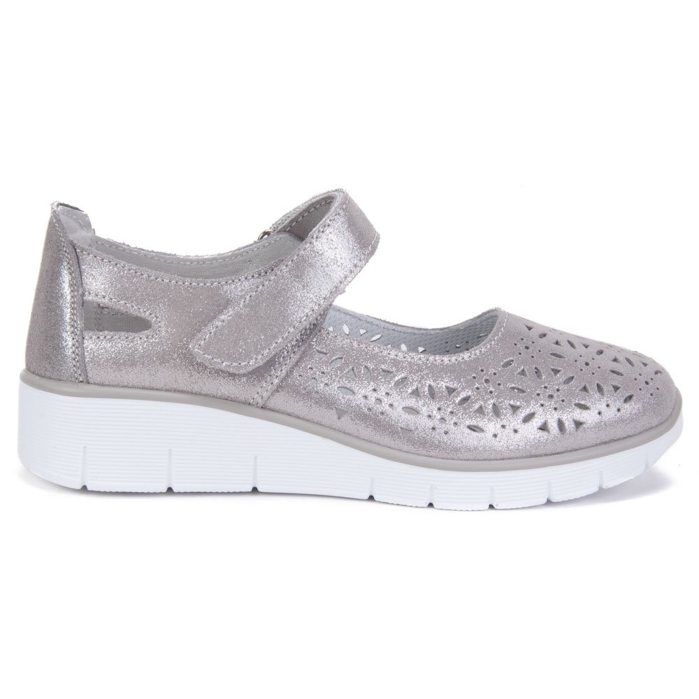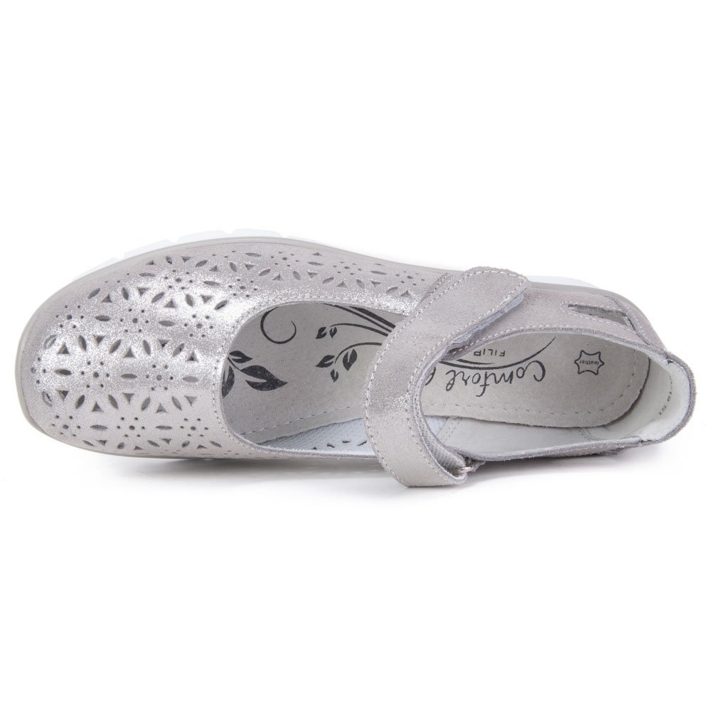 A Filippo cipőket áttört minta és fémes felület jellemzi, amely egyedi karaktert ad nekik. A 6 cm-es felső és az 1,5 cm-es platformmagasság optimális viselési kényelmet biztosít a mindennapi stílusban. A mandula alakú és kerek orr finomságot ad nekik, a szintetikus talp pedig stabilitást és jó tapadást garantál.