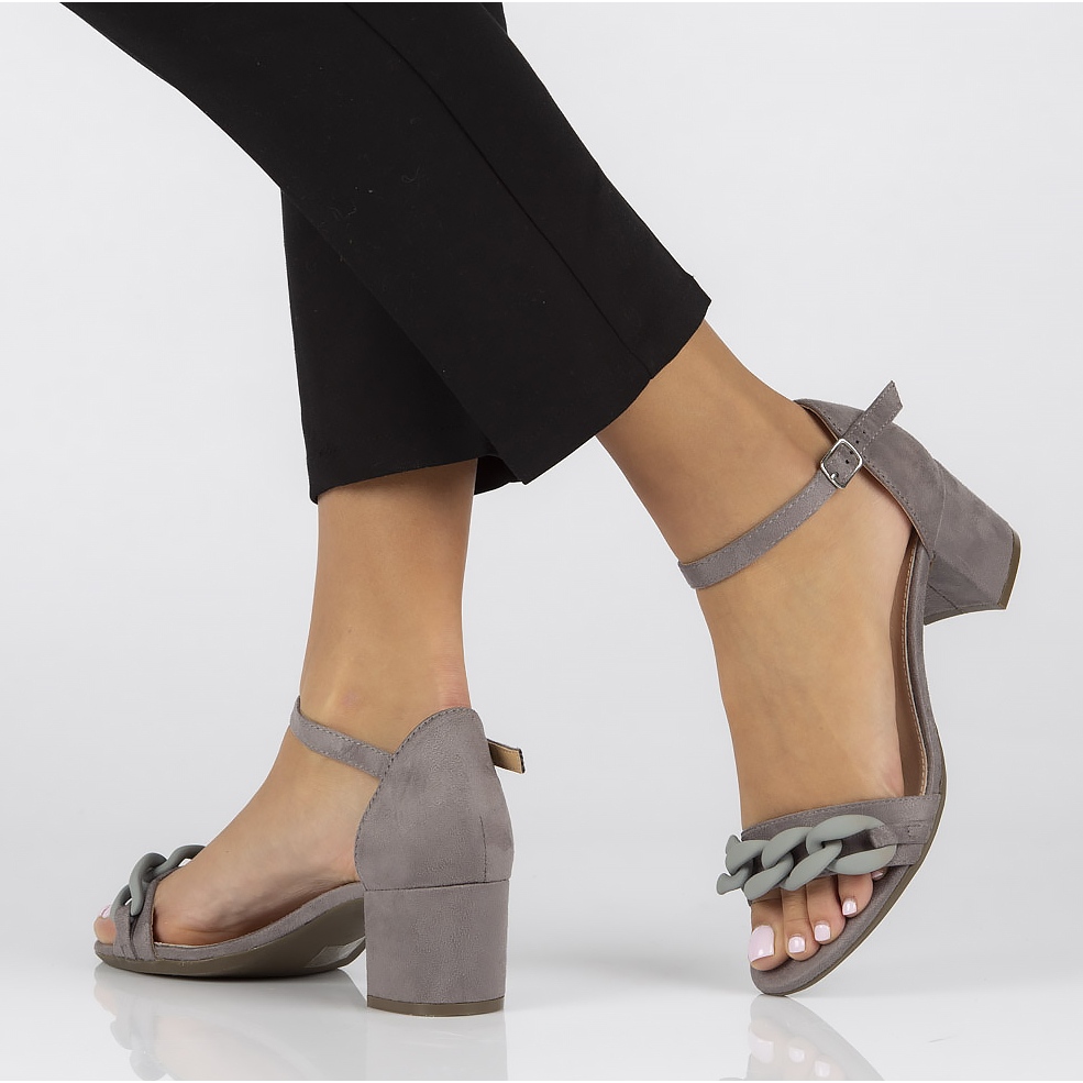 Az alkalmazott 5,5 cm magas blokk stabilitást és viselési kényelmet biztosít, a 0,5 cm magas platform pedig további kényelmet biztosít. A lábujj kerek formája elősegíti a mozgás szabadságát, a csatos rögzítés pedig lehetővé teszi a könnyű lábhoz való igazodást. Ezenkívül a dekoratív lánc stílusos akcentus, amely felkelti a figyelmet.