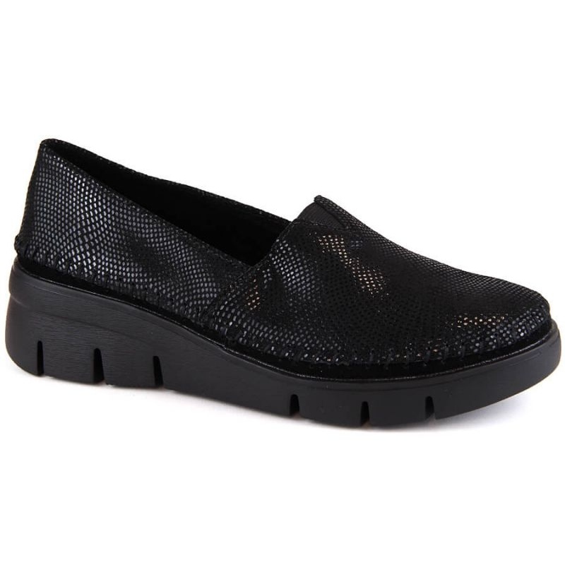 Az 5 cm -es magas sarkú cipőnek köszönhetően ezek a cipők osztályokat adnak, anélkül, hogy feladnák a kényelmet. Az univerzális fekete színek megkönnyítik őket a különböző stílusokkal - az alkalmi és az elegánsabb.