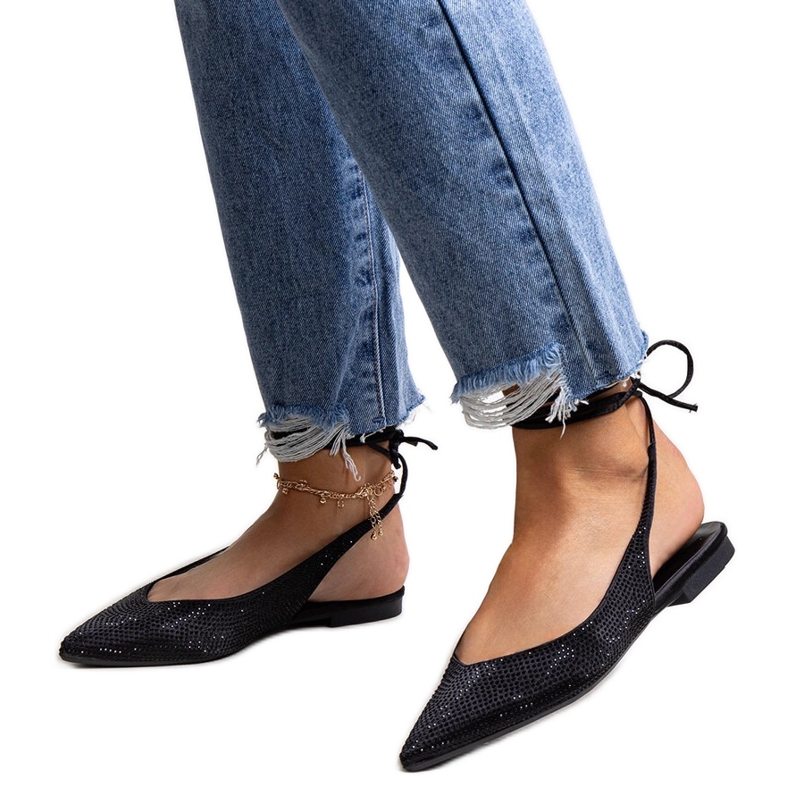 Részletek: Finom, fűzős fekete balettlakások strasszokkal