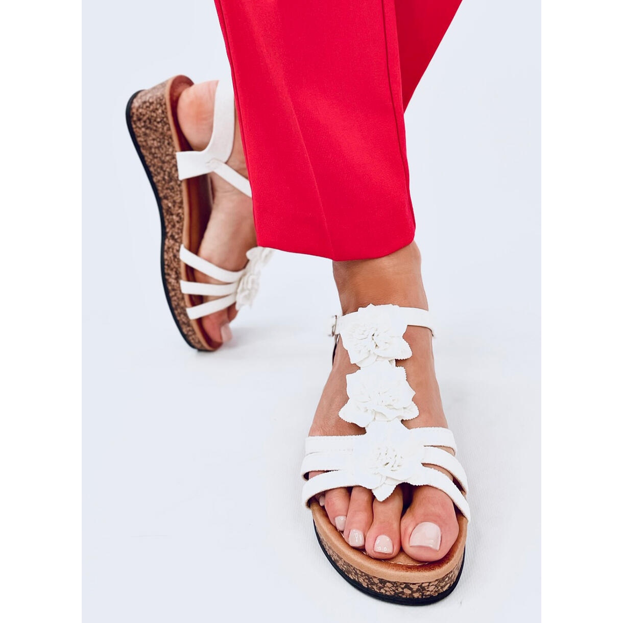 Fedezze fel a stílust és a kényelmet a Fisken White ék szandálának köszönhetően! Ezek az elegáns, fehér női szandálok egy kivételes virágos alkalmazással örülnek, amely óvatosan hangsúlyozza a középső lábat, és minden stilizációhoz hozzáad egy kis nőies varázst. Ökológiai velúrból készültek, és kombinálják a divatos megjelenést a környezetre.