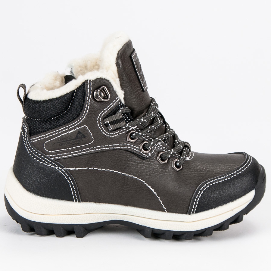 Meleg és kényelmes csizma fiúknak, tökéletes a hidegebb napokra. Ökológiai bőrből készült, belül puha báránybőrrel, hőkomfortot és kellemes viseletet biztosítanak. A klasszikus szürke színt sok stílussal könnyű összeilleszteni – a hétköznapoktól az elegánsabbakig.