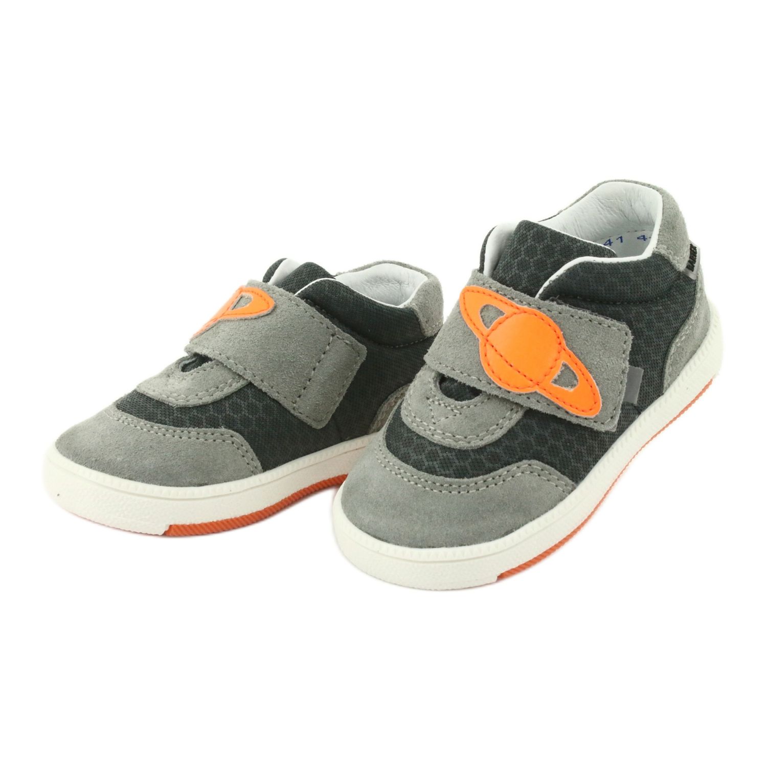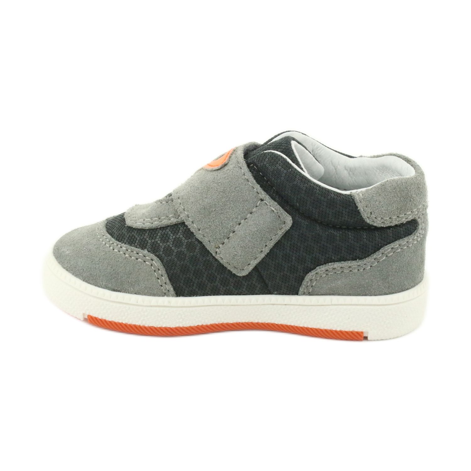 Klasszikus és kényelmes Bartek 71141 sportcipő, amely teljes egészében természetes bőrből készül, divatos, szürke színű, elegáns, narancssárga díszítéssel. Tökéletes a tavaszi és étkezési kirándulásokhoz az iskolába és az udvarra - kombinálják a tartósságot, a kényelmet és a biztonságos szerkezeti megoldásokat.