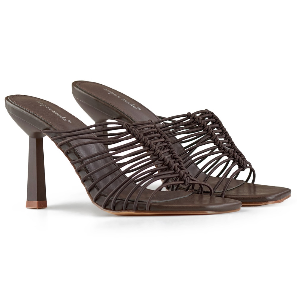 Részletek: Flip-flop magas sarkú, elegáns, rugalmas női papucs magas sarkú barna sarokkal