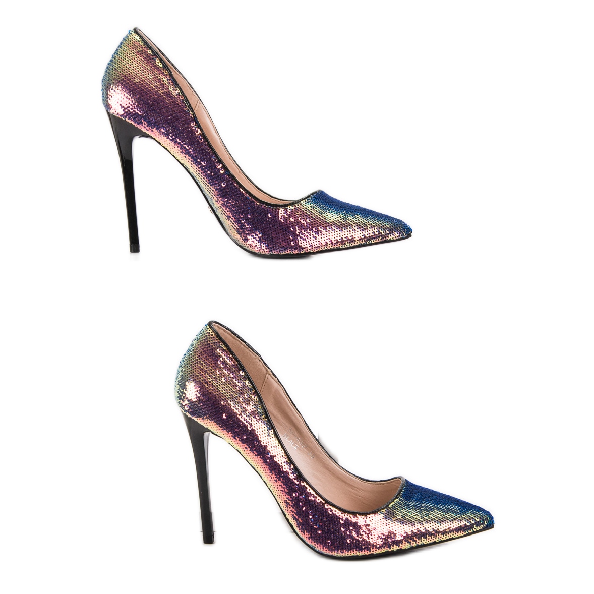 Finom flitterrel bevont anyagból készült magassarkú cipők szemet gyönyörködtetőek, és csillogást kölcsönöznek minden ruhának. Az ökológiai bőr, amelyből a talpbetét készült, kényelmes viseletet garantál, ami azt jelenti, hogy több órán át viselheti anélkül, hogy kellemetlenséget érezne. A sima, szintetikus talp nem csak esztétikussá, hanem praktikussá is teszi őket.