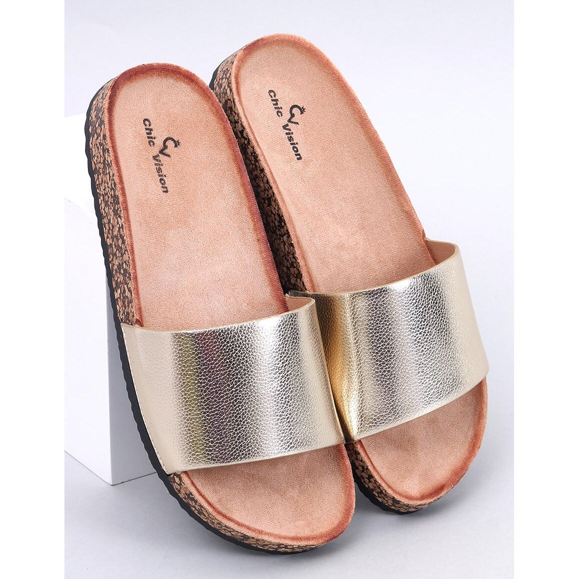 Kiváló minőségű ökológiai bőrből készült, ezek a flip flopok nemcsak elegánsnak, hanem környezetbarátak is. Fémes, arany színük megragadja a szemét, és tökéletesen megy különféle stílusokkal, alkalmi és kissé elegánsabb. A fekete műanyag talp további tartósságot biztosít, és egy lapos sarok, amelynek magassága 2 cm -es, minden lépésben garantálja a kényelmet.