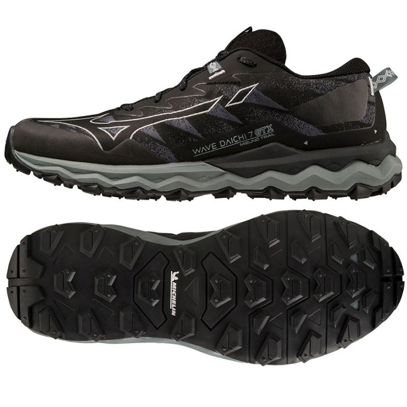**Mizuno Wave Daichi 7 Gtx M J1GJ225651 futócipő, fekete - társ minden trail versenyző számára**