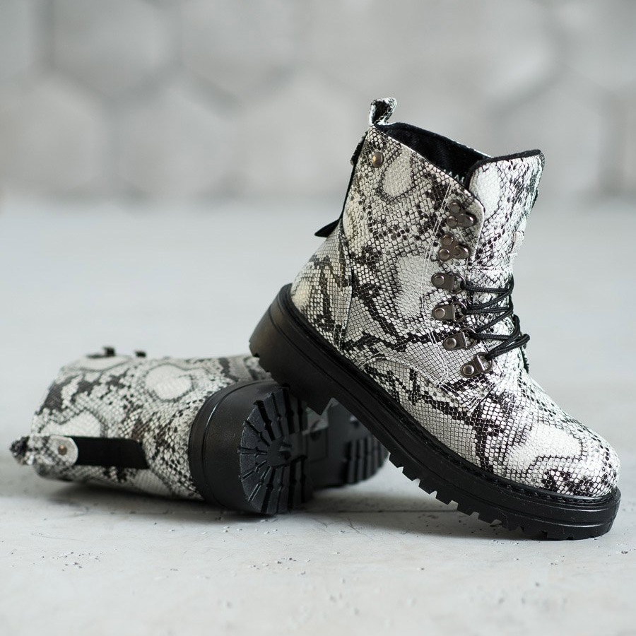 Fedezze fel a divatot a SHELOVET márka legújabb fűzős csizmáival! Ezek az egyedi női cipők nemcsak eredeti megjelenésükkel gyönyörködtetnek, hanem kényelmet és funkcionalitást is biztosítanak, amely jól illeszkedik a mindennapi stílushoz. Kiváló minőségű, ökológiai bőrből készült, gyönyörű kígyóbőr motívumú csizma minden bizonnyal felkelti a figyelmet, és tökéletes kiegészítője lesz ruhatárának.