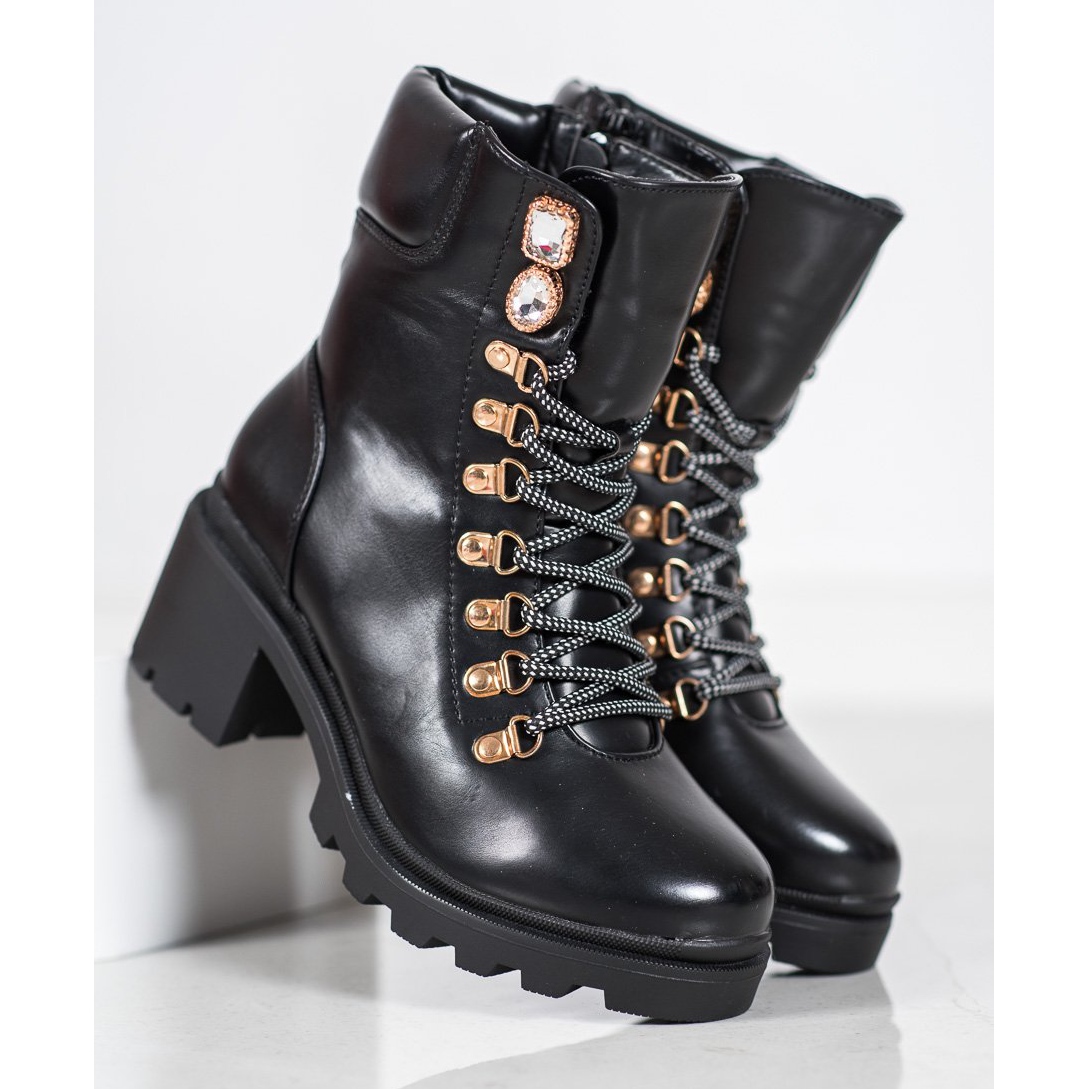 **Seastar fűzős, magas sarkú bokacsizma fekete színben**