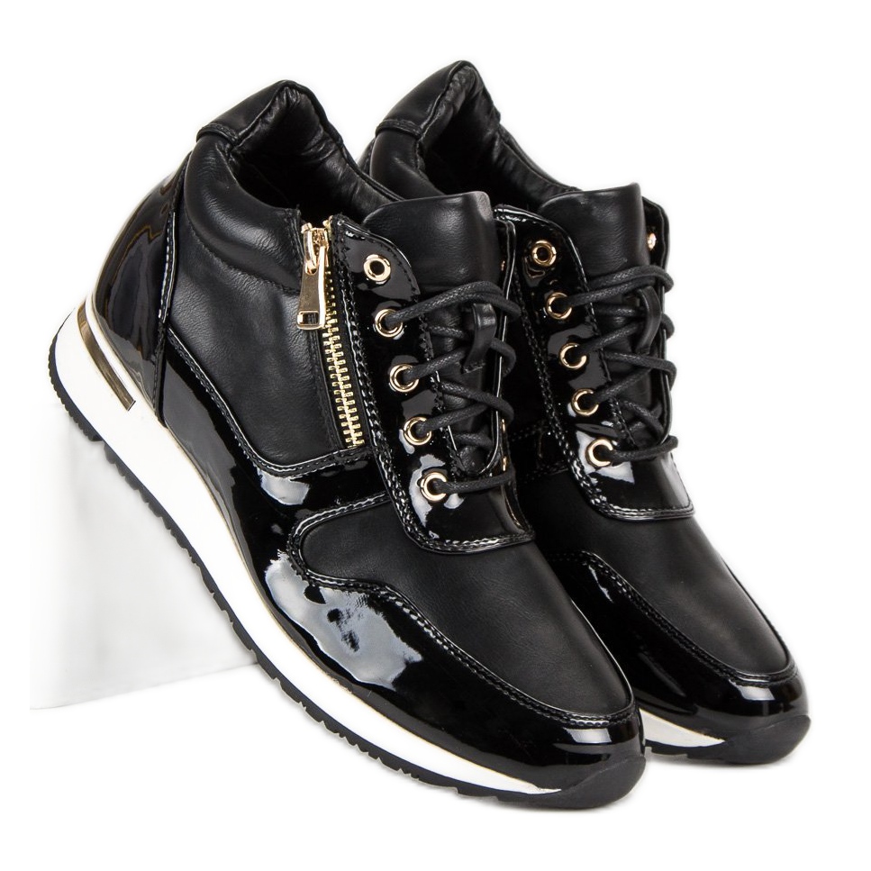 Fedezze fel az egyedi stílust és kényelmet a fekete J. Star tornacipőkkel, amelyek a matt és lakk ökológiai bőr kombinációjával gyönyörködnek. Ezek a fűzős tornacipők ideális választás azoknak a nőknek, akik értékelik a divatos megjelenést és a kényelmet. A dekoratív cipzárnak és a vastag, fehér talpnak köszönhetően minden nap kitűnhet majd mások közül.