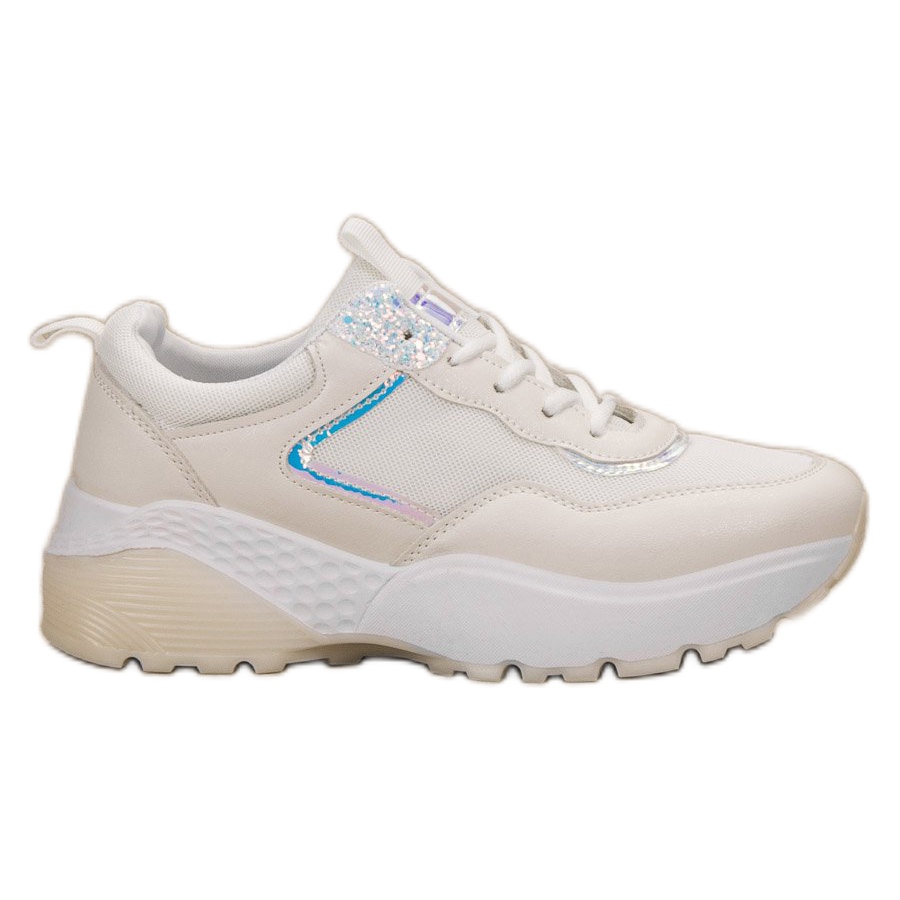 Fedezze fel a kényelem és a stílus tökéletes kombinációját a fehér SHELOVET fűzős tornacipőkkel. Ezek a divatos cipők a kis, 5 cm magas platformnak köszönhetően tökéletesen formálják a lábakat, így karcsúbbnak és elegánsabbnak tűnnek. A csillogó akcentusok egy csipetnyi elegánsságot kölcsönöznek minden stílusnak, így ez a modell alkalmas mindennapi viseletre és sportruházatra is.