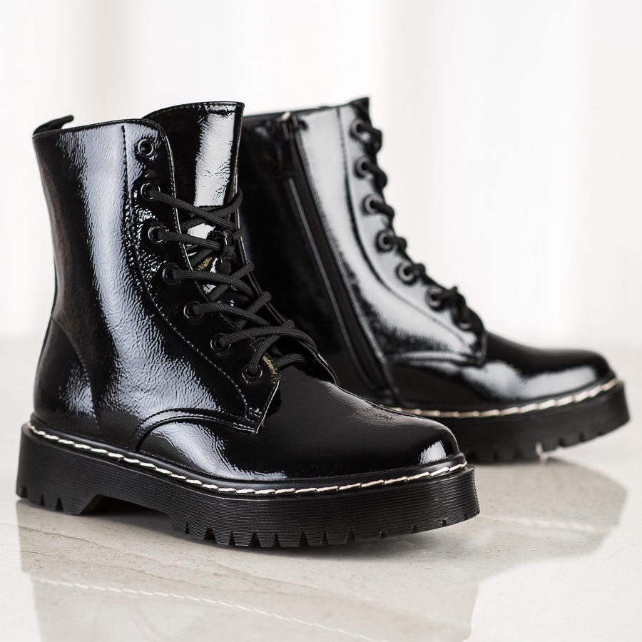 A 3,5 cm magas platform és a lapos sarok lehetővé teszi a kényelmes mozgást egész nap. Ezenkívül a praktikus cipzár és a fűzős rögzítés megkönnyíti a felhelyezést és a lábhoz igazítást. A 15 cm-es felső magasság gyönyörűen formálja a lábakat, a lakkozott felület pedig egyedi fényt kölcsönöz nekik.