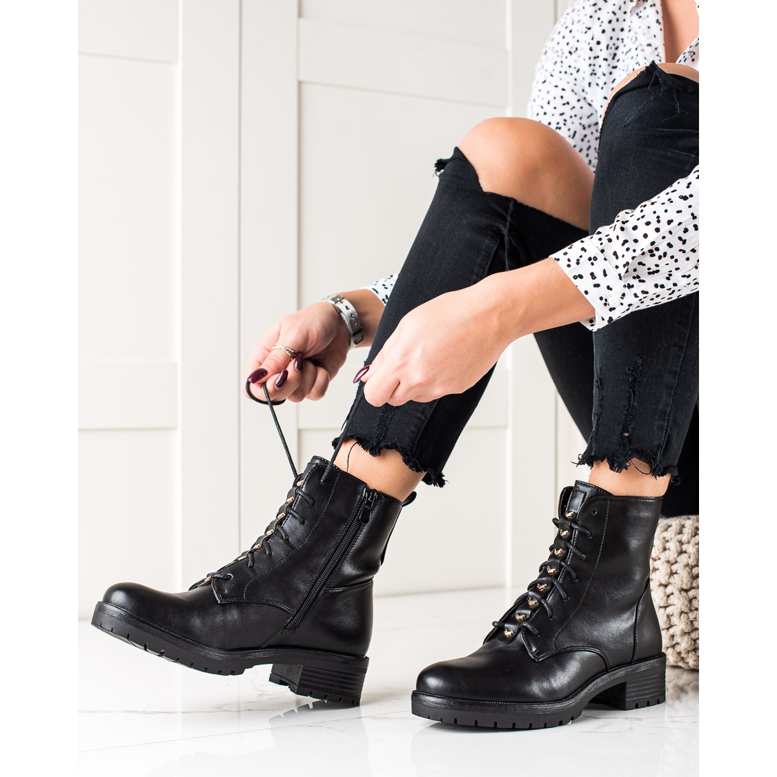 A csizmának 4 cm-es lapos sarka és 2 cm-es platformja van, ami nemcsak könnyedséget ad a lépésnek, hanem meghosszabbítja a lábakat is. Kiváló minőségű műbőrből készültek, rendkívül elegánsak és modernek. A puha, textil bélés további kényelmet biztosít, a cipzár és a fűző pedig megkönnyíti a felhelyezést és a lábhoz igazítást.