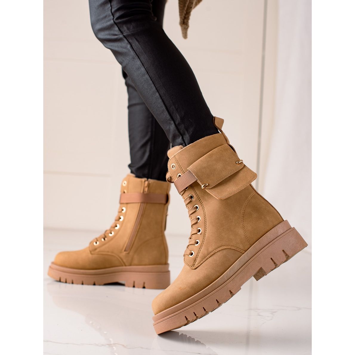 TRENDI TRENDI Fűzős csizmák Trappers zsebbel bézs